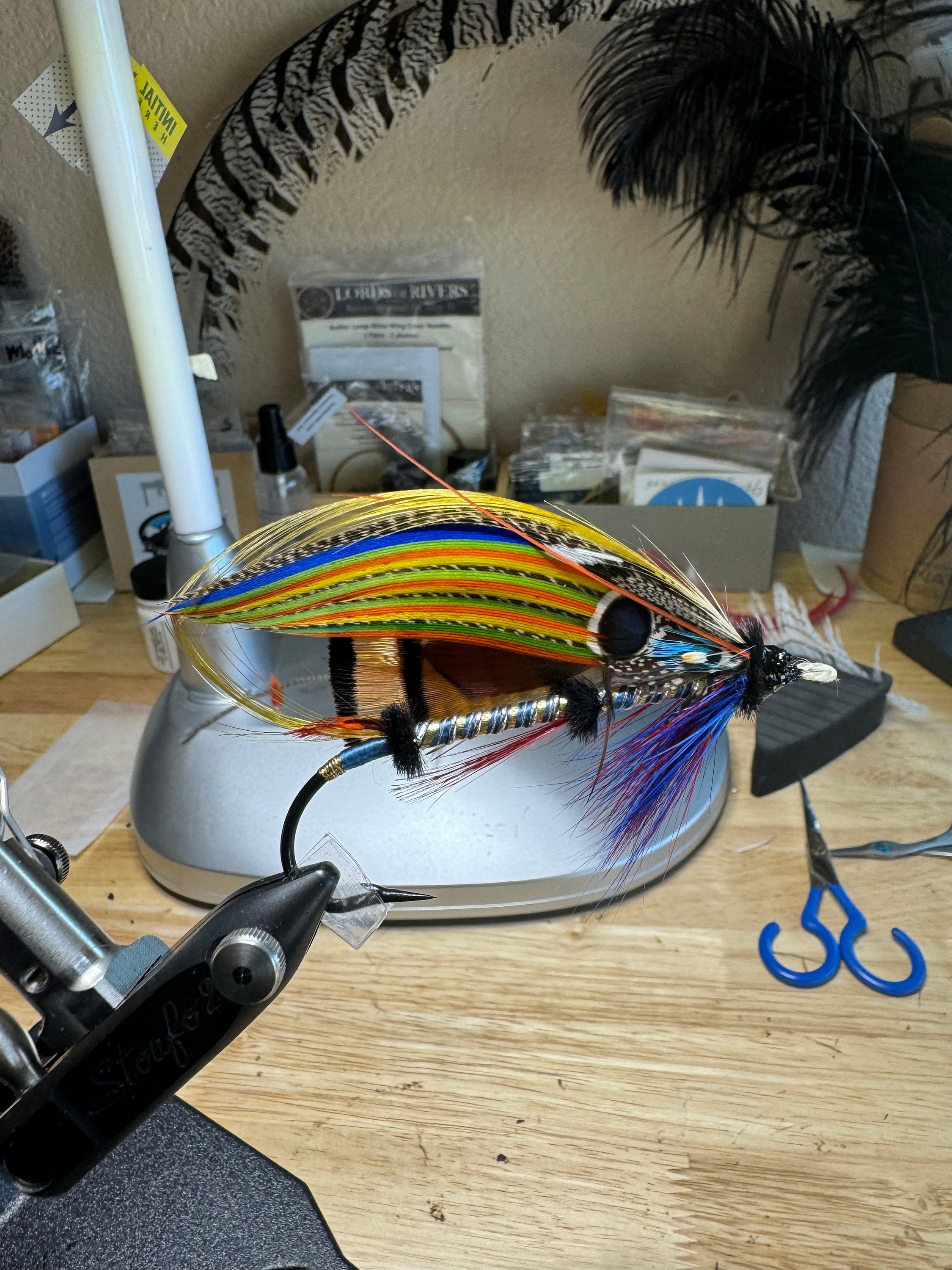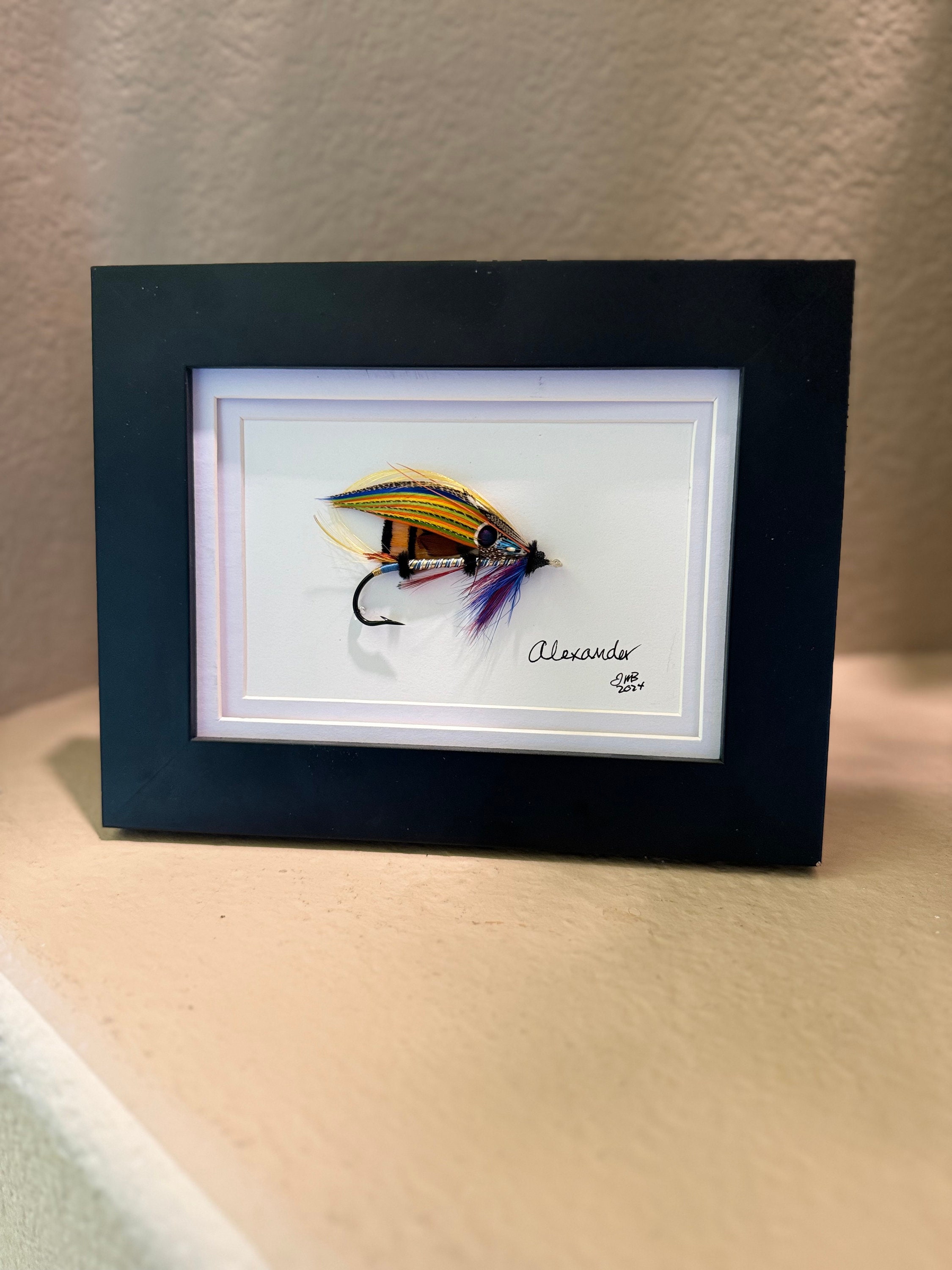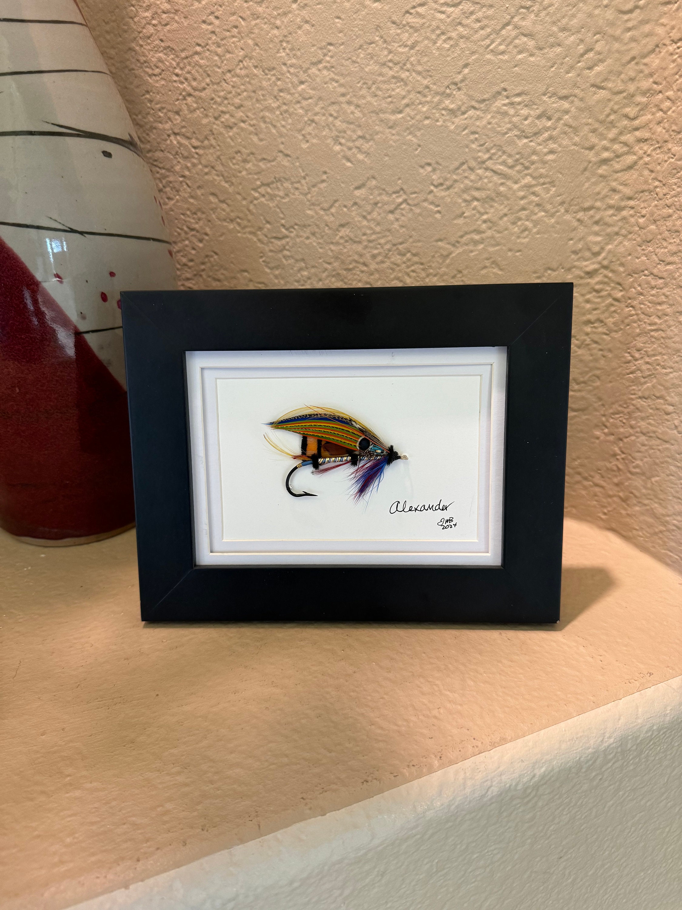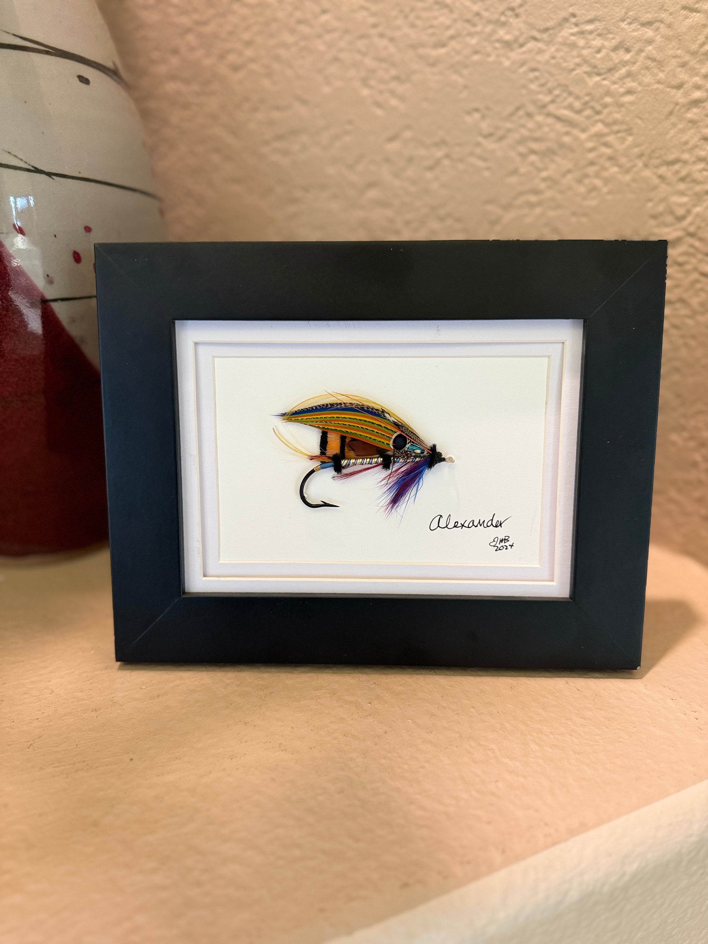 As a lifelong trout & salmon fly fishing and tying enthusiast, I enjoy dressing and sharing artistic expression through classic and authentic fly design –Alexander- is a freestyle fly dressed on a 6/0 Partridge blind eye hook with a Spanish silk gut loop. A list of all feathers and materials is included with each fly. *All materials and feathers are procured from ethically sourced providers