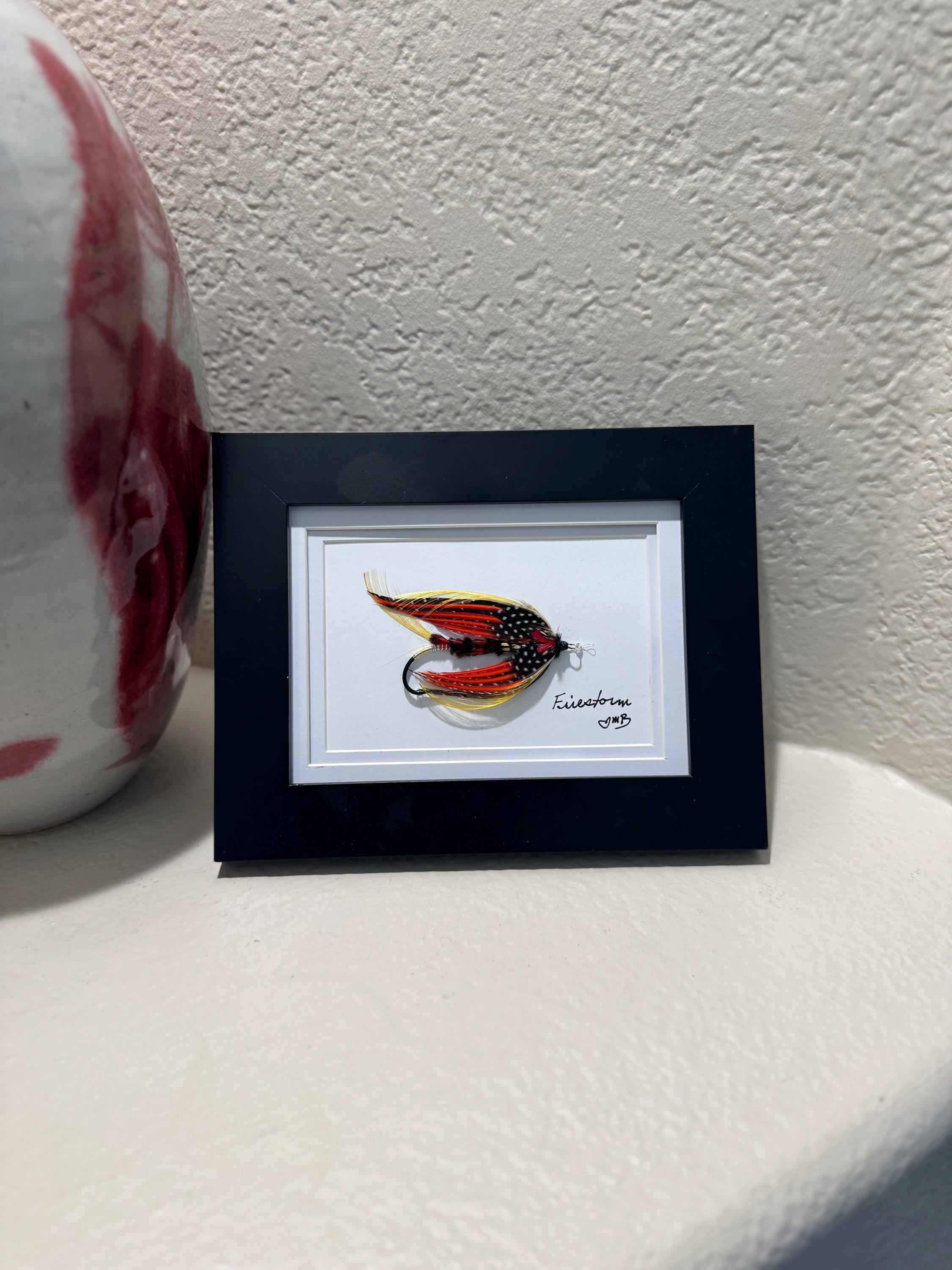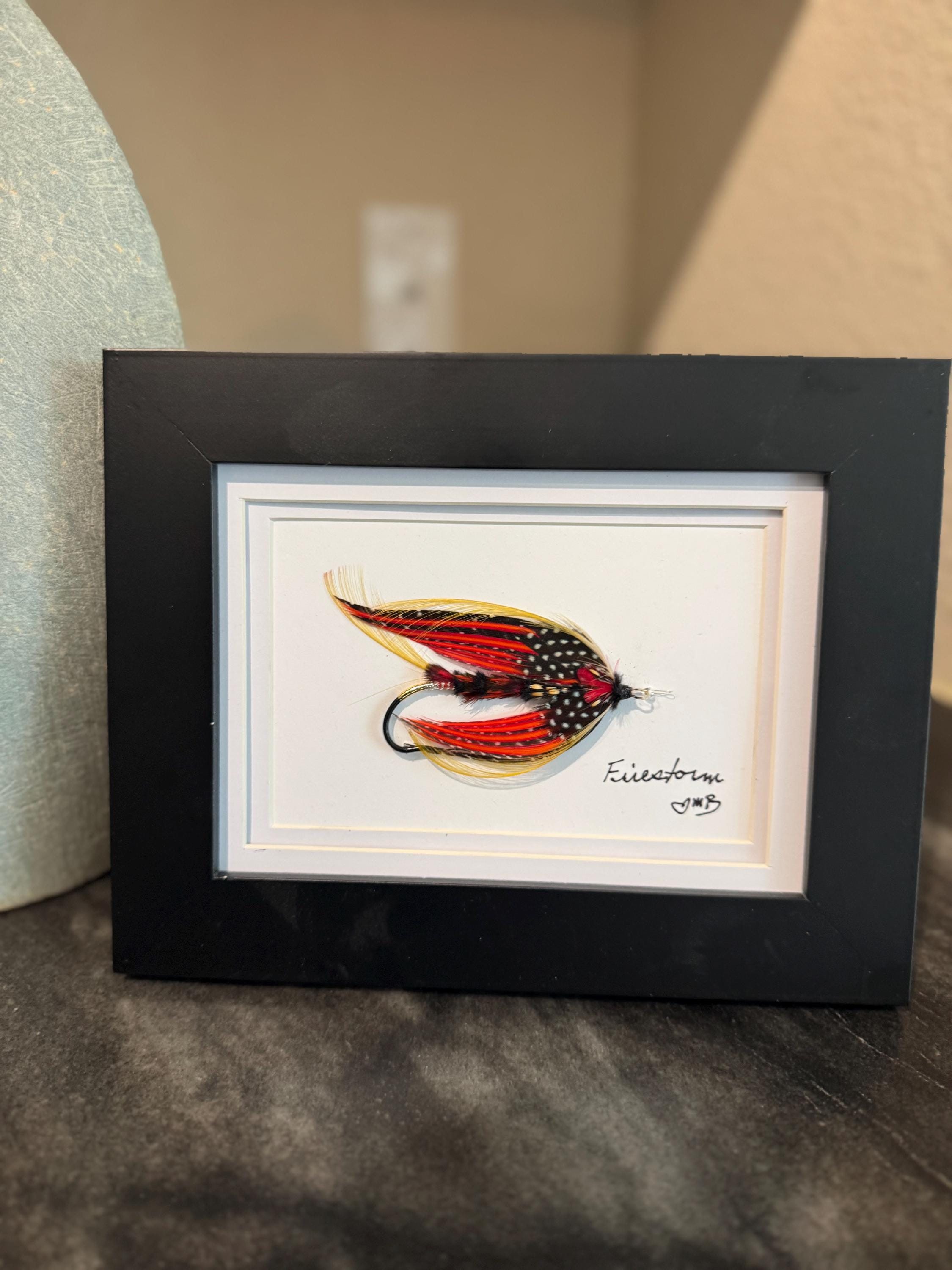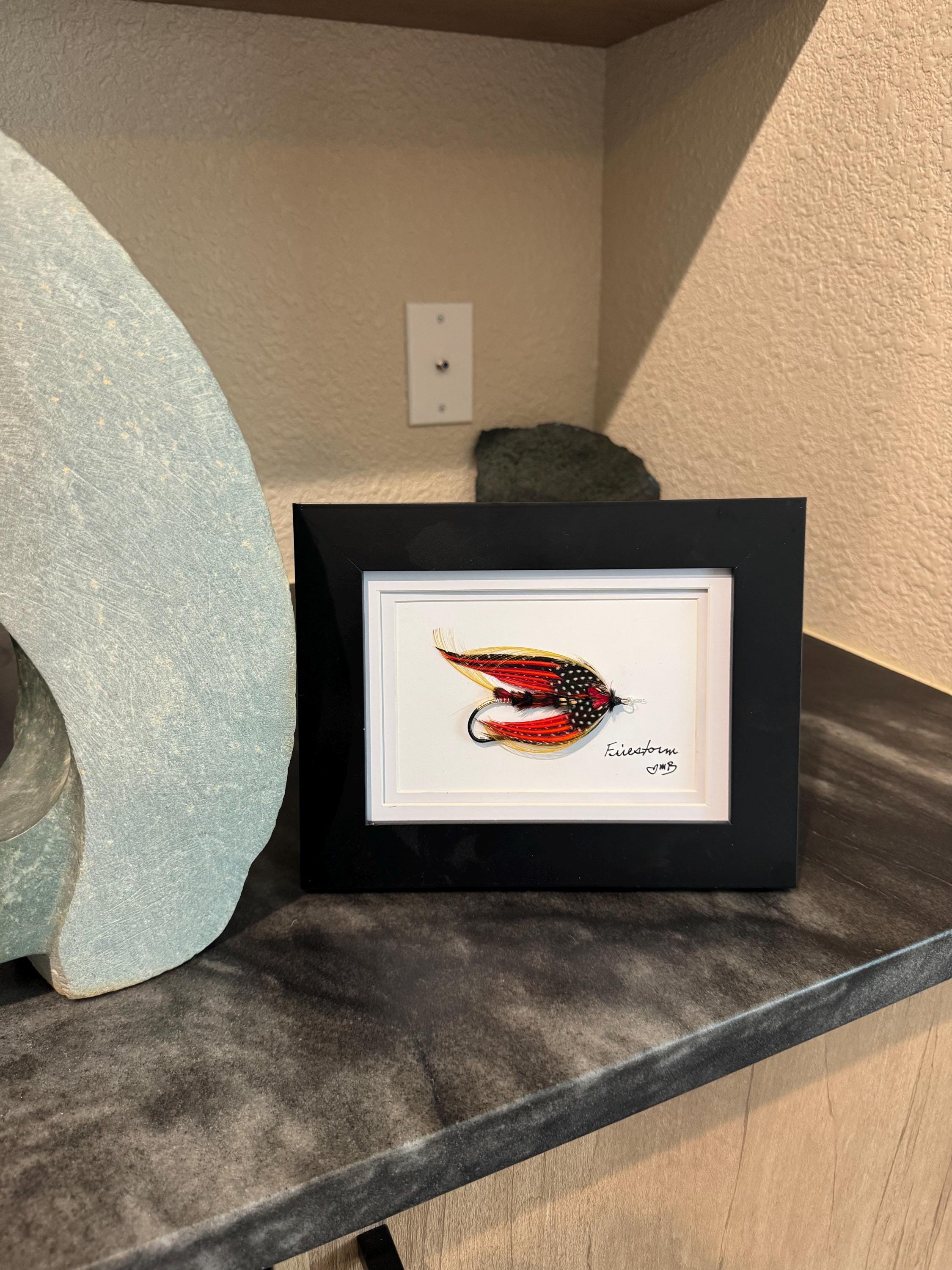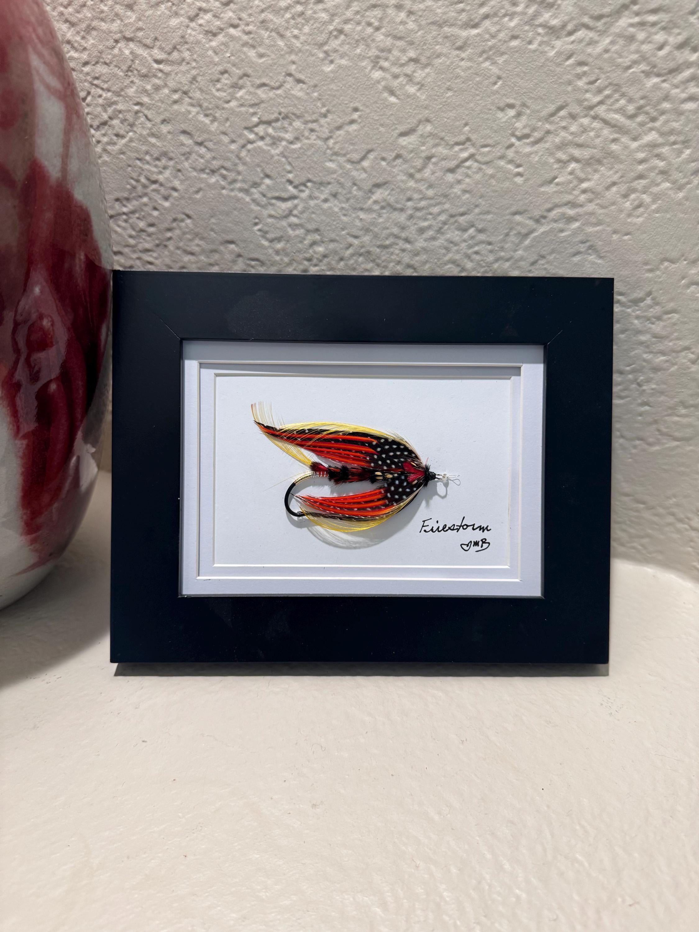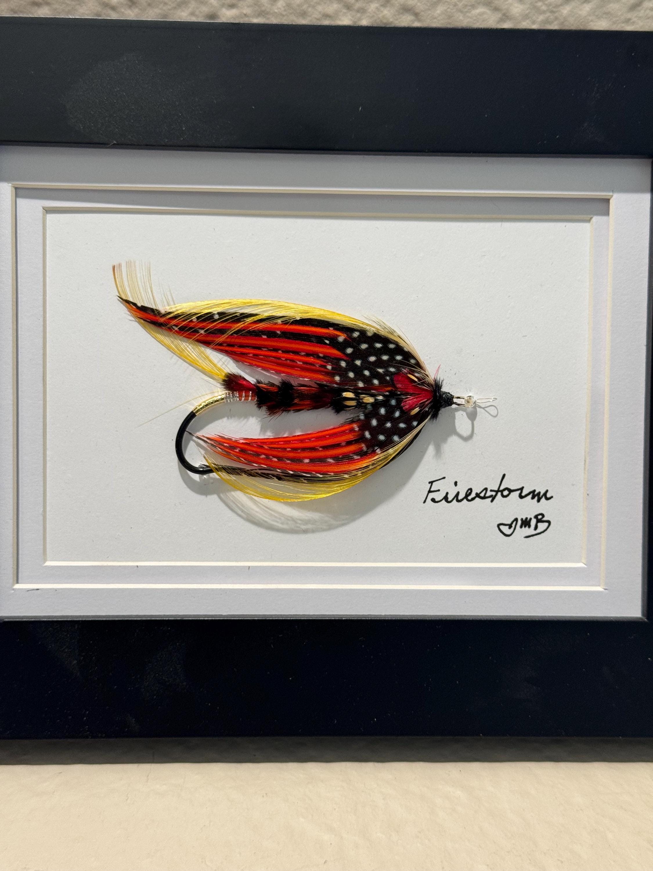 As a lifelong trout & salmon fly fishing and tying enthusiast, I enjoy dressing and sharing artistic expression through classic and authentic fly design –Firestorm is an original freestyle fly dressed on a 7/0 Partridge blind eye hook with silk gut loop. A list of all feathers and materials is included with each fly. *All materials and feathers are procured from ethically sourced providers