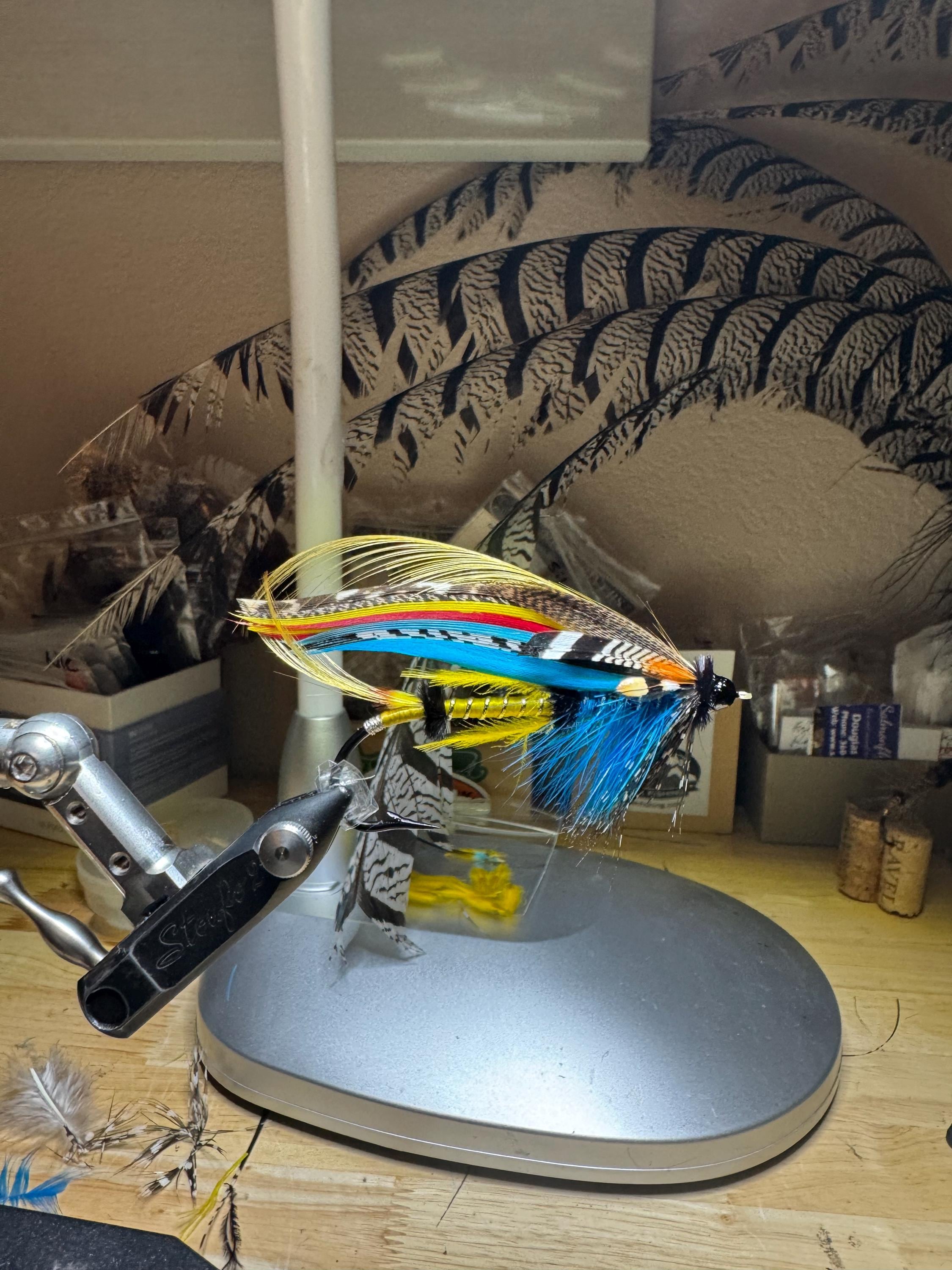 As a lifelong trout & salmon fly fishing and tying enthusiast, I enjoy dressing and sharing artistic expression through classic and authentic fly design “Lang Syne” is a classic salmon fly dressed on a 7/0 Partridge blind eye hook with a Spanish silk gut loop. A list of all feathers and materials is included with each fly. *All materials and feathers are procured from ethically sourced providers.
